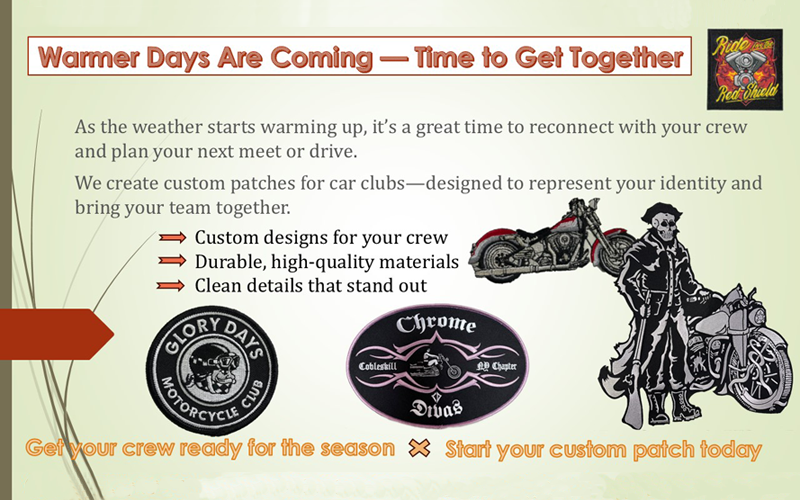 We create custom patches for car clubs-designed to represent your identity and bring your team together.